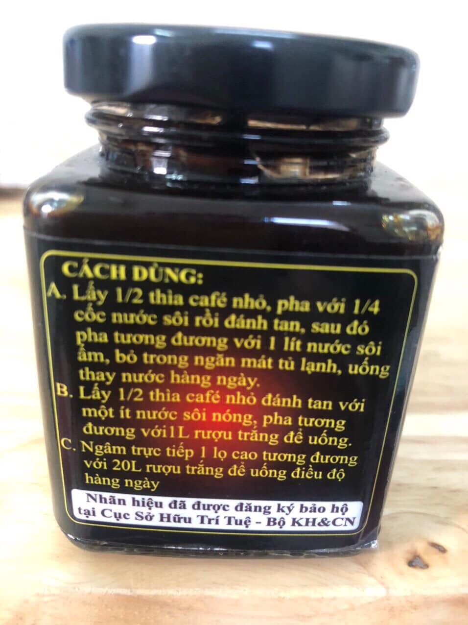 Lấy 1/2 thìa cà phê nhỏ cao dược liệu, hòa tan với 1/4 cốc nước sôi nóng, sau đó pha loãng tương đương với 1 lít rượu trắng (ưu tiên rượu ngâm chum, để càng lâu càng tốt).